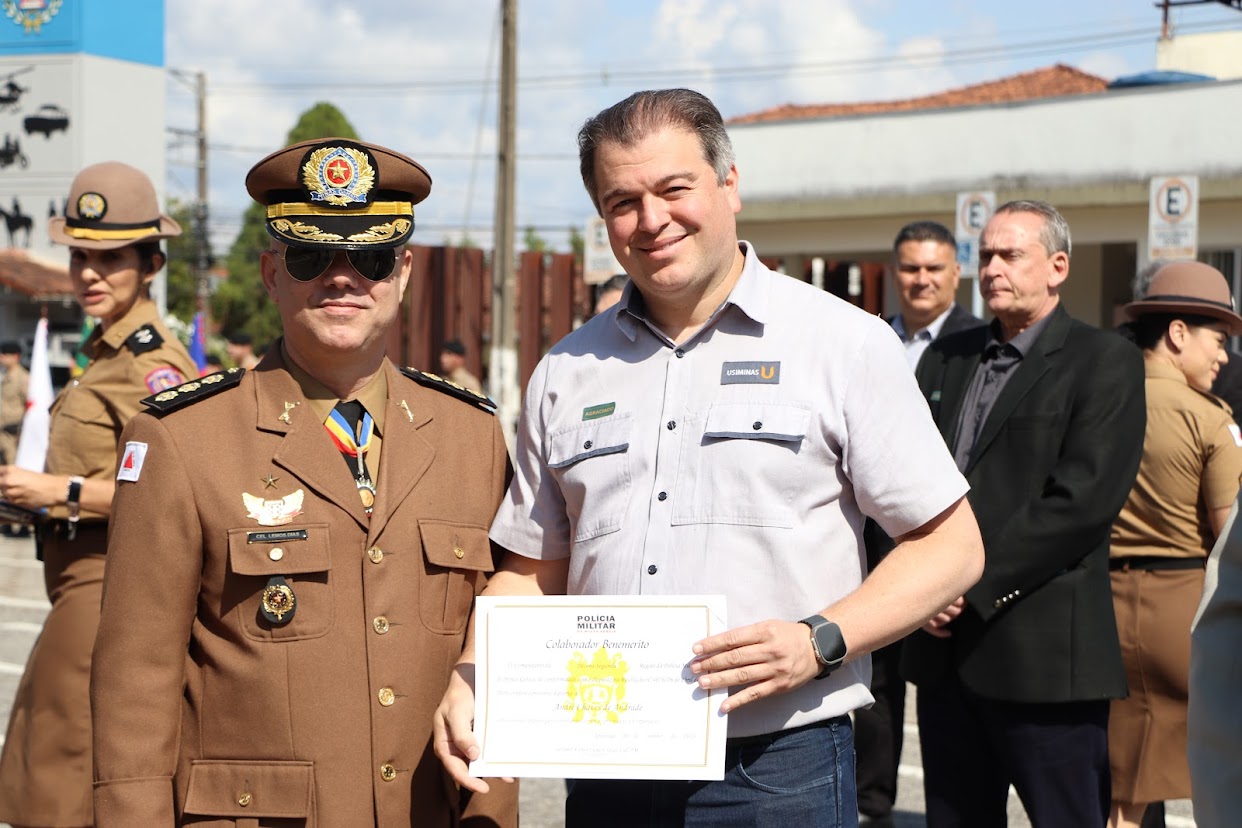 O diretor de Sustentabilidade e Relações Institucionais da Usiminas, André Chaves, foi homenageado pela Polícia Militar de Minas Gerais com o diploma de Colaborador Benemérito. A solenidade fez parte da comemoração alusiva aos 248 anos da corporação.