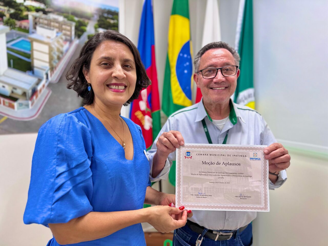 O presidente da AAPI, Joaquim Cândido Ferreira, acompanhado por membros da diretoria, recebeu nesta sexta-feira a Moção de Aplausos nº 1187/2025, de autoria da vereadora professora Cida Lima, aprovada por unanimidade pela Câmara Municipal de Ipatinga.